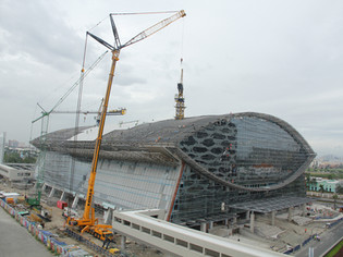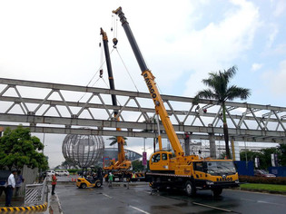 Using a 30 ton truck mounted & a 35 ton rough terrain, a footbridge was tandem lifted into place at Mall of Asia for Grandspan Development Inc.