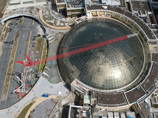 Demag AC700 with luffing jib dismantling tower cranes at the SM ARENA.