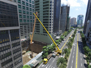 Demag AC200-1 installing tower crane parts along Ayala Ave. in Makati City.